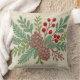 Coussin Broderie Noël Floral Sprig Pinecone Rouge