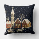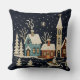 Coussin Broderie Noël Snowy Village Scène Bleu