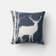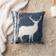Si vous aimez les bouleaux, les cerfs, la nature et la faune, vous aimerez ce joli coussin en noir, bleu et blanc avec un cerf en silhouette blanche sur un côté, fait sur le dos coussin, ciel neigeux bleu, grands flocons de neige blancs et bouleaux blancs !