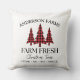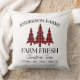 Add rustic holiday charm to your home with this Buffalo Plaid Christmas Tree Farm Throw Pillow. Featuring a classic black and red checkered theme, it showcases a vintage-style "Farm Fresh Christmas Trees" sign, personalized with your family name to create a cozy, custom touch. Perfect for farmhouse Christmas décor or gifting, this soft and stylish accent pillow brings festive warmth to any space. This pillow is a part of a Christmas holiday collection with coordinating items available. We encourage you to explore the full set to create a perfectly matched party celebration.