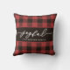 Red Holiday Buffalo Plaid avec Joyful Script et Nom de famille Oreiller de Noël.