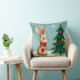 Coussin Bunny Festif à côté de l'arbre de Noël décoré