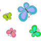 Fun multicolor folk art style butterflies flutter over this sweet blue and white stripe background. Personalize name or message!