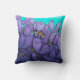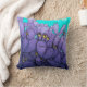 Coussin de cactus amusant avec une illustration numérique de créatures avec les yeux au lieu de fleurs en violet et bleu. Un design amusant représentant un groupe de ces plantes cool succulents comme de mignons personnages aux grands yeux.