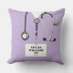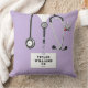 Conception unique d'oreiller d'infirmière présentant des uniformes de bloc, un stéthoscope et un couteau suisse. Modifier le texte pour ajouter le nom et les informations d'identification professionnelles.