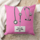 Un cadeau coussin créatif d'infirmière diplômée avec des gommages d'hôpital roses, un stéthoscope et un couteau suisse. Modifiez le texte pour ajouter le nom et les titres de compétence de votre infirmière, médecin ou assistant médical préféré.