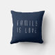 Un oreiller personnalisé bleu marine et blanc. Gardez la phrase Famille est Amour ou changez-la et personnalisez les deux lignes de texte.