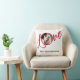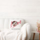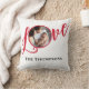 Ce design comprend un joli script de calligraphie Joyeux Noël lancer oreiller avec écriture de calligraphie d'amour, une photo de famille modèle, design de typographie rouge et blanc, stylisé de script de calligraphie tendance, message cadeau customisé sur mesure, un classique classique design traditionnel d'hiver, décoration de maison de vacances de Noël, cadeau photo de Noël, un joli créateur design de typographie unique