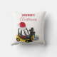 Une jolie illustration d'un chariot élévateur à fourche jaune portant un chapeau de Père Noël et décoré de lumières de Noël avec les mots "Joyeux Noël". Le chariot élévateur festif transporte des cadeaux de Noël et des cadeaux. Parfait pour les passionnés de camions de transport de tous âges. Un design de Noël idéal pour les passionnés de chariots élévateurs, petits ou grands, les filles ou les garçons.