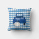 Célébrez la chute avec cet adorable coussin ! Le coussin a un arrière - plan à chèque bleu et blanc et un pick-up bleu avec un citrouille blanc et le texte "Chute heureux".