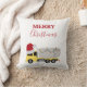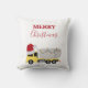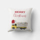 Une jolie illustration d'un camion-citerne jaune portant un chapeau de Père Noël et décoré de lumières de Noël avec les mots "Joyeux Noël". Parfait pour les passionnés de camions de transport de tous âges. Un coussin de Noël idéal pour les passionnés de camions-citernes, petits ou grands, les filles ou les garçons.