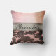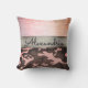 Sur ce coussin élégant est une texture en verre dépoli rose pâle avec un ruban argenté chatoyant où vous pouvez le personnaliser pour le rendre unique à vous, puis en dessous c'est un motif de camouflage rose et marron pour le contraste. Vibes chic et élégantes.