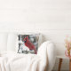 Ce coussin présente un beau cardinal mâle rouge vif dans une forêt magique.