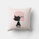 Illustration vectorielle adorable d'un petit caniche français rose et noir sur un lala Ooh rose et blanc ! motif arrière - plan.