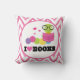 Ce coussin adorable de livre a rose et l'arrière - plan blanc de zigzag de chevron avec le rat de bibliothèque et moi mignons aiment le slogan de livres.