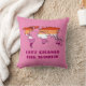 Personnalisable lancer l'oreiller avec la carte du monde dans la couleur du drapeau de la fierté lesbienne, un design sur un arrière - plan rose; le texte "Changeons le monde" est un texte modèle et peut être changé.