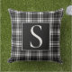 Coussin de plein air élégant avec un design en plaid/tartan noir et blanc à damiers, personnalisé avec votre monogramme/initial. Parfait pour votre décor de ferme.