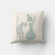 Cet oreiller design à jetons est une jolie illustration d'un chat gris posé à côté d'un vase vert turquoise rempli de fleurs et botaniques. Personnalisez-le avec votre nom en typographie manuscrite. Grand cadeau pour les amoureux de les chats.