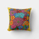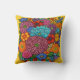 Vibrant Peinture stylisée d'un bouquet floral coloré dans un vase coloré à rayures assorti par l'artiste populaire Lisa Lorenz sur un oreiller à lancer.