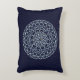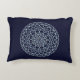Un mandala en forme de dentelle en cercle concentrique en bleu clair avec des points bleu vif et dorés comme des étoiles, frangés entre les couches, crée un design amusant qui rappelle un ciel étoilé étoilé.