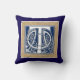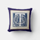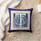 Une belle lettre céleste en relief décoratif illuminée de têtes de dragon gris sur un arrière - plan bleu foncé velouté. Ce coussin a une double bordure de motifs en pierre, la lumière avec un bord foncé sur un côté, qui est vénéré à l'arrière. Changez l'arrière - plan pour l'adapter à votre décor.
