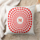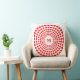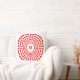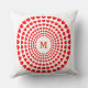 Jetez un oreiller avec sept cercles de coeur et la lettre M au centre. Couleur rouge et blanche. L'amour est partout !