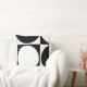 Un oreiller jeté géométrique moderne, noir et blanc, avec des cercles et des carrés, fait un cadeau de nouvelle maison minimaliste. La beauté, modifiez la couleur de remplissage et associez la couleur de votre choix avec un motif blanc. Pour obtenir de l'aide ou discuter d'une conception personnalisée, contactez https://t.me/KBMD3signs_chat.