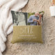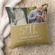 Un élégant coussin souvenir de 50e anniversaire de mariage, avec 2 photos spéciales et une typographie élégante sur fond doré. Conçu par Thisisnotme©
