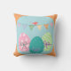 Ce design coloré présente le mot "Printemps" avec un oiseau et des décorations d'œufs de Pâques. L'arrière de l'oreiller présente des rayures orange et bleues.