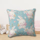 Un adorable lapin blanc, des fleurs et des images de papillons composent le motif de ce coussin pour la chambre de bébé. Les images sont placées sur un fond bleu pastel des deux côtés du coussin. Un merveilleux cadeau pour une baby shower !