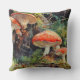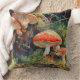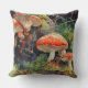 Love Cottagecore ? Ce coussin est pour vous ! Il présente des champignons rouges d'aquarelle foncée poussant sur des billes en décomposition sur le plancher forestier. Des herbes et des fougères poussent autour d'elles. Les couleurs riches et le thème fantaisiste vous feront vivre dans n'importe quelle chambre de votre maison.