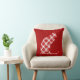 Coussin dans une silhouette de chat assis en vacances motif de buffle rouge et blanc plaid et flocons de neige éparpillés