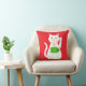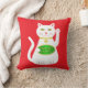 Ce superbe oreiller présente une image de design graphique d'un chat blanc oriental chanceux qui agite la patte. Le chat a de beaux yeux dorés et porte un médaillon doré au collier autour de son cou. Le chat a des oreilles et des moustaches roses. Ce petit chat mignon tient un jeton doré avec incrustation de jade vert et un message en texte doré qui dit "Bonne Chance". Le motif est reproduit sur l'ensemble du dos de l'oreiller.