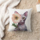 Coussin Chat mignon avec grande fleur| Chat Sphynx adorabl