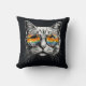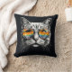 Un coussin avec un chat avec des lunettes arc-en-ciel