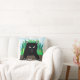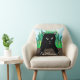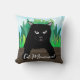 Freddie Hanging fait partie de ma collection sur le thème du chat inspirée par non autre que mon bel ami en fureur ! C'est un coussin carré avec l'illustration d'un chat noir avec des pattes accrochées au-dessus d'une clôture en bois avec de la verdure dans l'arrière - plan et un ciel bleu. Le texte avant et arrière et la couleur arrière solide peuvent être customisés.