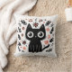 Vintage chat folk noir avec de grands yeux entouré de fleurs