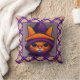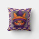 Chat orange avec Casquette de sorcière violet Coussin de dessin. Dessin d'un mignon chat orange avec un casquette violet et orange.
