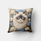 Coussin Chat Ragdoll Avec Fleurs Bleues D'Hydrangée