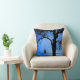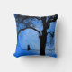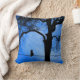 Magnifique pleine lune bleue avec un chat noir sur un fil qui la regarde