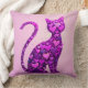 Une silhouette de chat violet créativement conçue et composée de formes de cœur sur un fond rose, symbolisant l'amour et l'affection avec des accents de couleur vibrants.