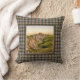 Jetez un oreiller avec une lithographie photo vintage du château de Dunnottar en Ecosse de 1895 images les ruines d'un château médiéval sur une falaise surplombant la mer, avec des collines verdoyantes au premier plan. numériquement nettoyé, rehaussé et artistiquement rendu pour ressembler à stylo et encre à l'aquarelle. Encadré et soutenu avec le Clan Sutherland antique tartan patiné, un motif écossais traditionnel en plaid dans les tons dorés, vert clair et rouge, avec des reflets noirs et blancs.