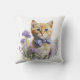 Un coussin doux à l'accent, avec aquarelle d'un chaton à table orange, avec une cravate arc violet et assis dans un lit ou des fleurs violettes. Belle idée cadeau pour n'importe quel amoureux des chats.
