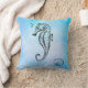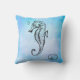 Coussin Cheval de mer et coquillage sur l'aquarelle bleue