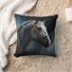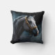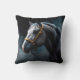 Coussin Cheval sur fond noir avec teintes bleues