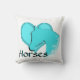 Une silhouette de la tête d'un cheval sur coeur de couleur aqua avec le mot "Chevaux". Customisez avec votre nom ou votre texte. Le cadeau parfait pour votre amoureux des chevaux! Conçu par Robin D. Cox.