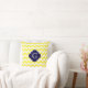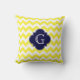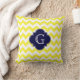 Coussin Chevron jaune blanc Bleu marine Monogramme quatref