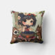 A sweet fairy tale throw pillow for a little girl's room. A cute little cartoon chibi fairy eating blackberries with her forest friends, a raccoon and squirrel.