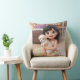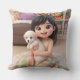 Coussin Chibi Girl Hugging White Puppy Dog Throw Pillow