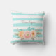 Ajoutez une touche d'élégance féminine à votre décor avec cet oreiller à rayures chic aqua turquoise décoré d'une douce pêche et d'un ranunculus rose floral. Personnalisez ce magnifique design féminin en ajoutant votre nom.